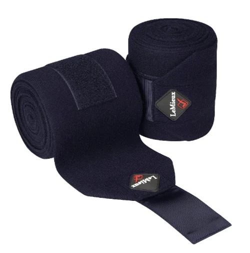 LeMieux Stable Bandages can be used to support the horse’s legs after exercise, at the shows, or while traveling. Horse leg wraps with Velcro stay securely in place. A LeMieux rubber emblem adds the finishing touch. Mary’s has the LeMieux Stable Bandages in a Set of 2 in Navy or Black.