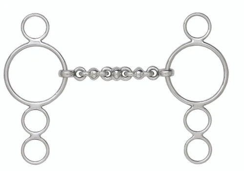 Made of the best quality stainless steel, the three ring Pessoa elevator gag bit features a waterford mouthpiece for secure, comfortable placement in your horse’s mouth.