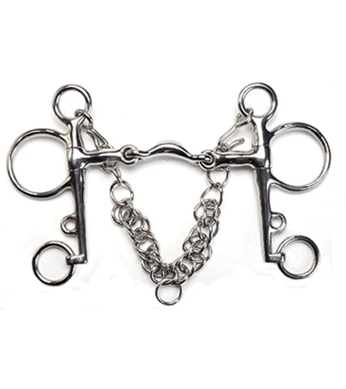 Quarter Moon Pelham from Jacks is a jointed mouth bit with center lozenge in a curved shape. Carefully crafted of Stainless Steel, the Quarter Moon Pelham Bit features a 12 mm mouth thickness and 5-1/2″ cheeks. Size 5 to fit most horses.